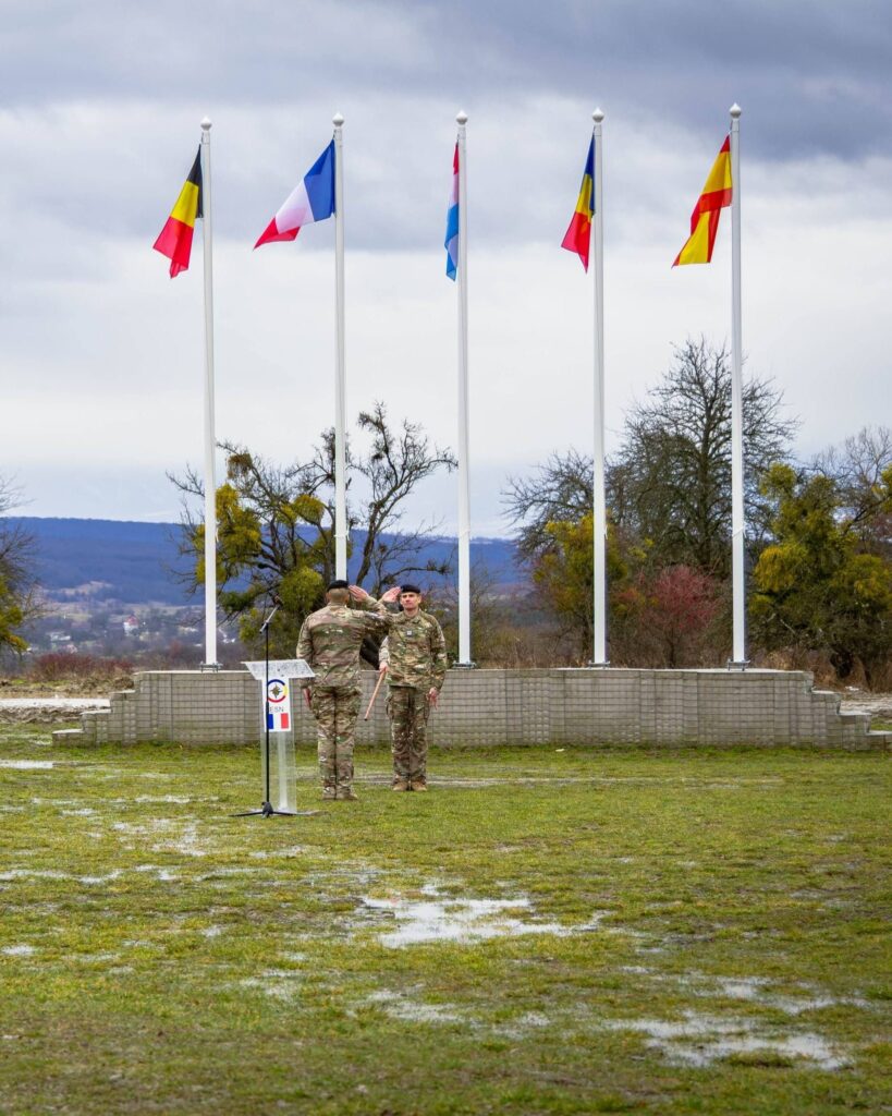 Le 24 février s’est tenu la cérémonie de passation de commandement (HOTO : Hand-over take-over) au camp de Cincu (Roumanie), marquant la fin du mandat AIGLE XII et le début du mandat AIGLE XIII armé par le GTIA KOUFRA, créé le 12 février dernier au quartier Colonel Dio.